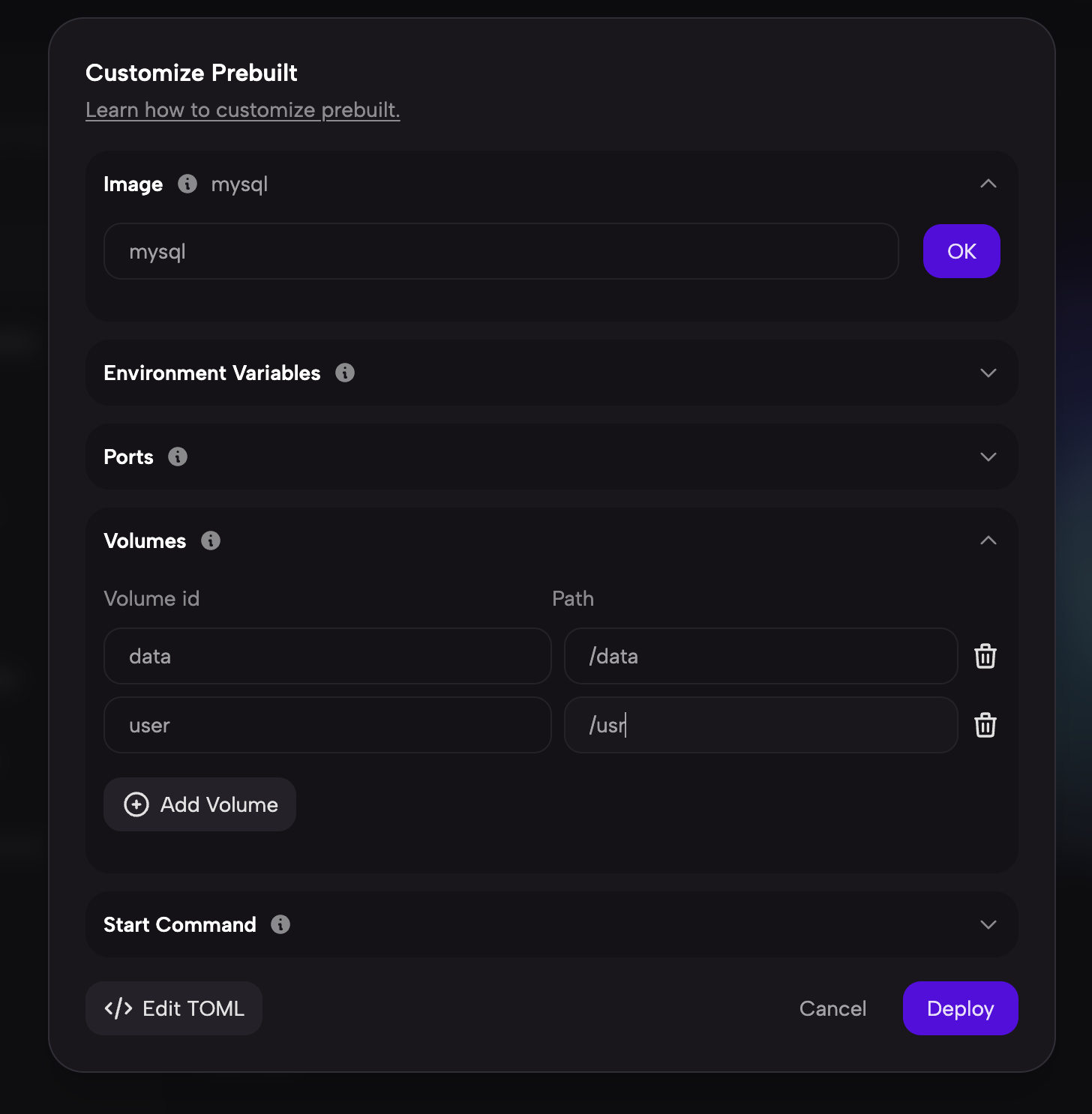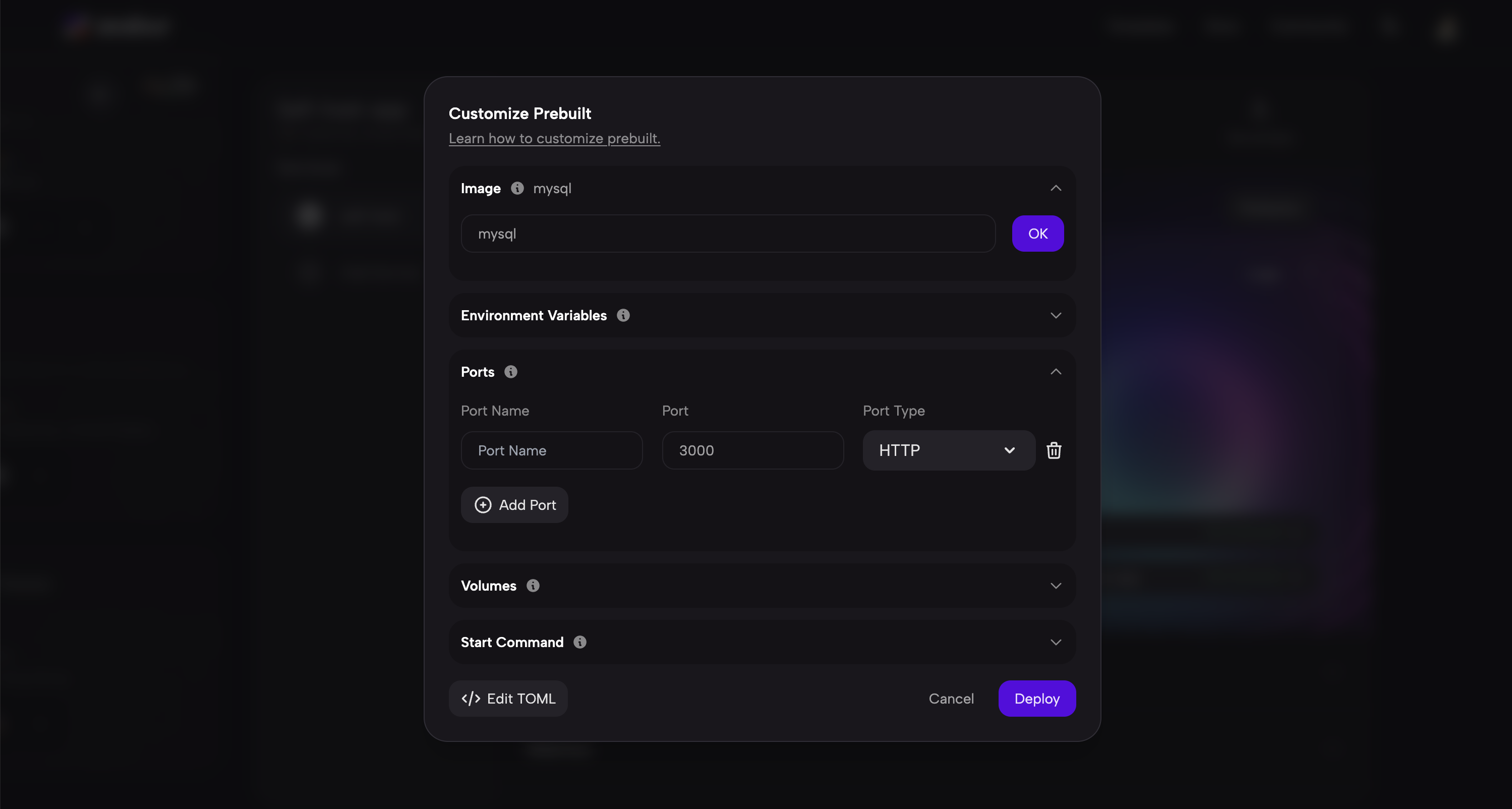 We know it will be much better if you can customize a prebuilt service to fit your needs just in the dashboard instead of contributing a new toml file to our repository. So we've been improving our prebuilt service optimization feature, and it's much easier to customize a prebuilt service now.