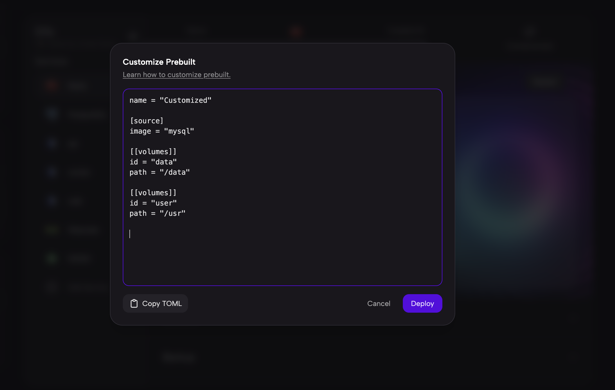 You can also create a prebuilt service directly in the dashboard with a TOML file.