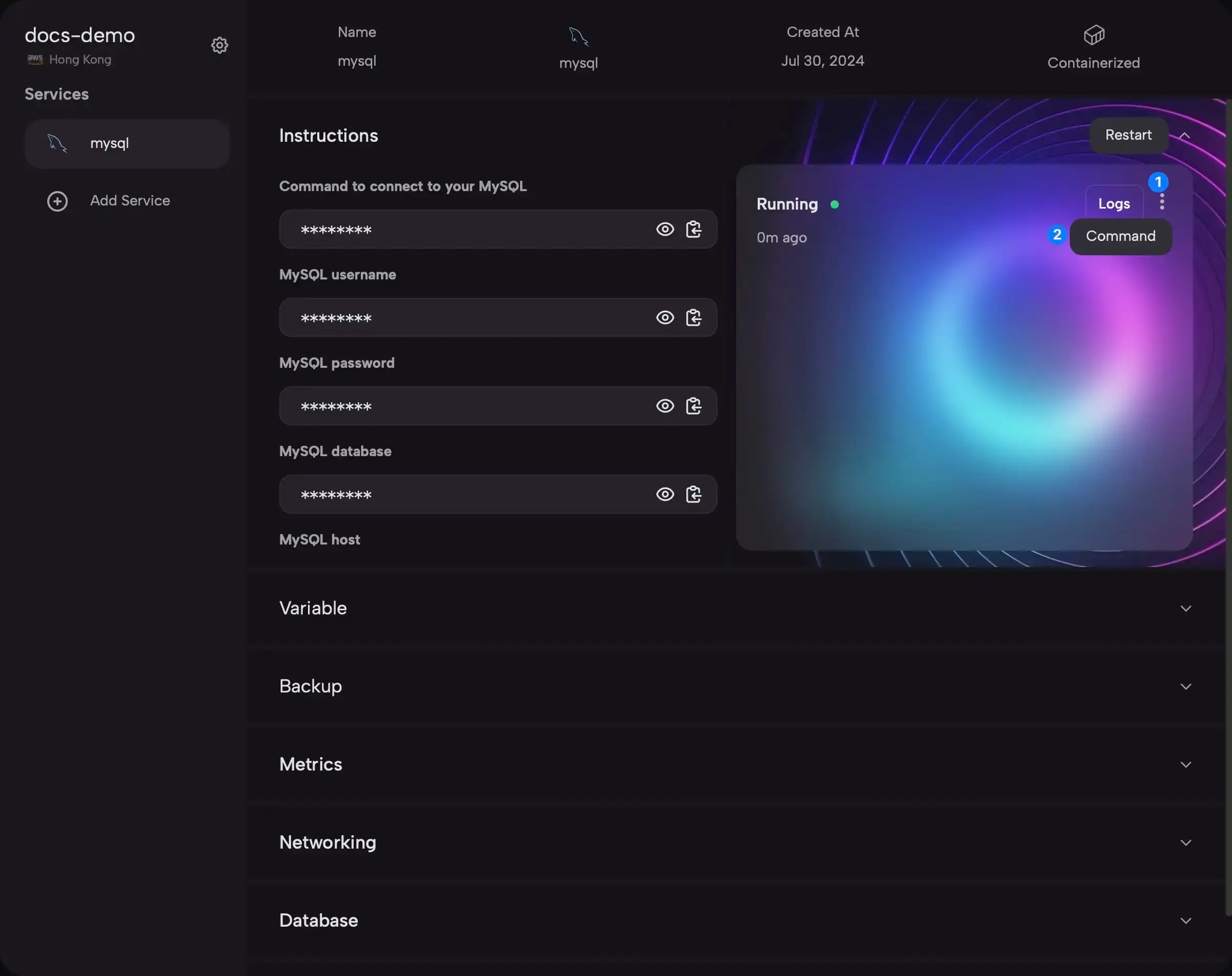 Need to check some configs for your container? Need to run migrations after running or back up some specific files? We've got you covered with our new feature: Execute Command.